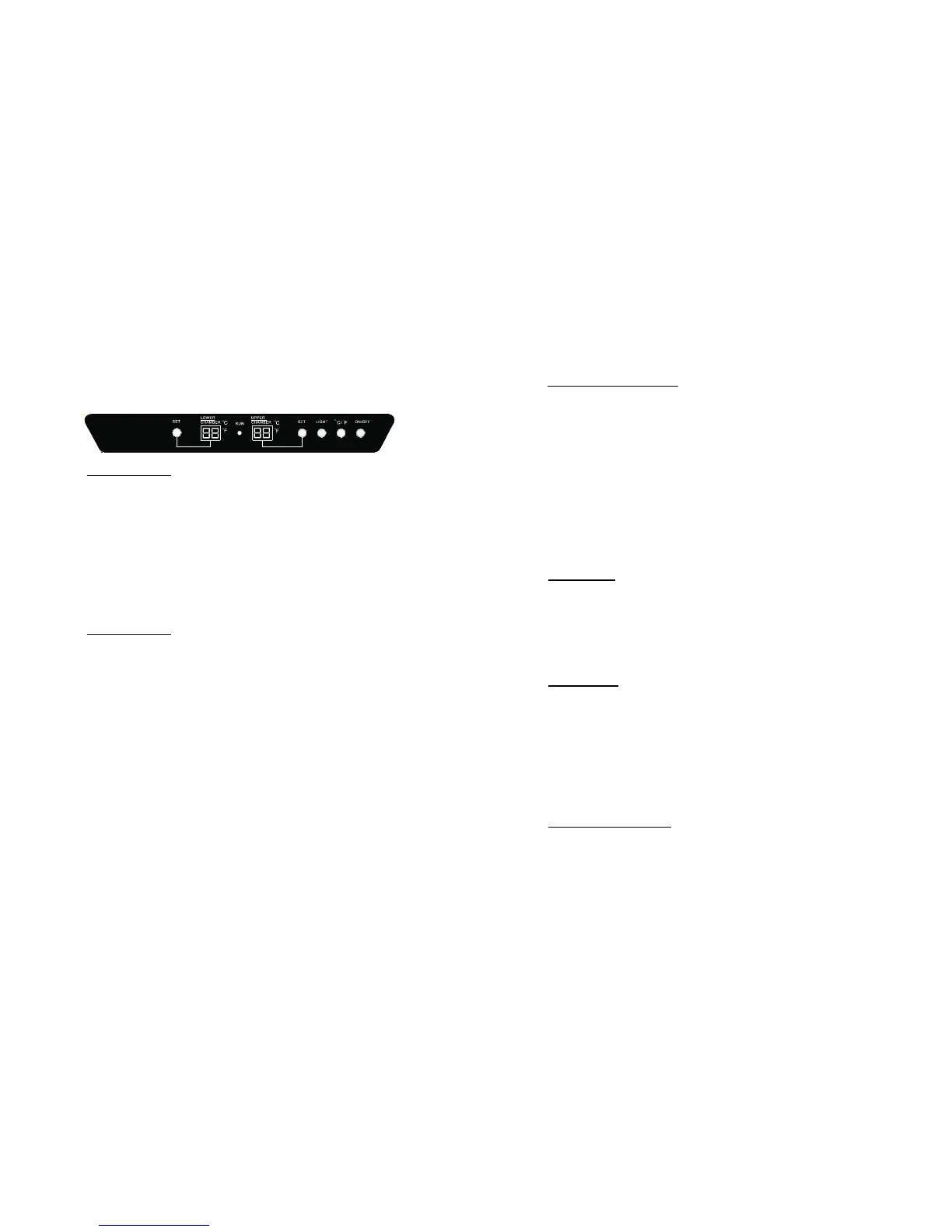 • SET Button of the lower chamber:Temperature setting button; Once you press