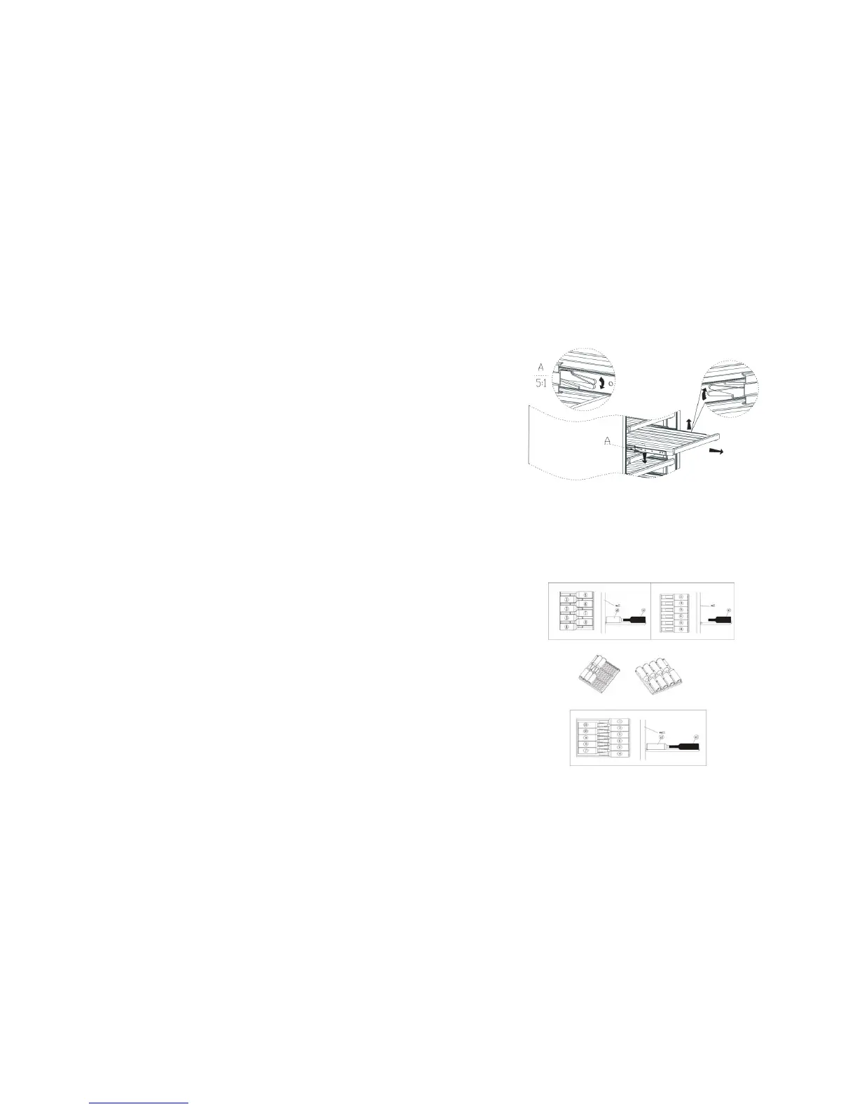 Do as the following shows if needing to pull out or change the shelves;