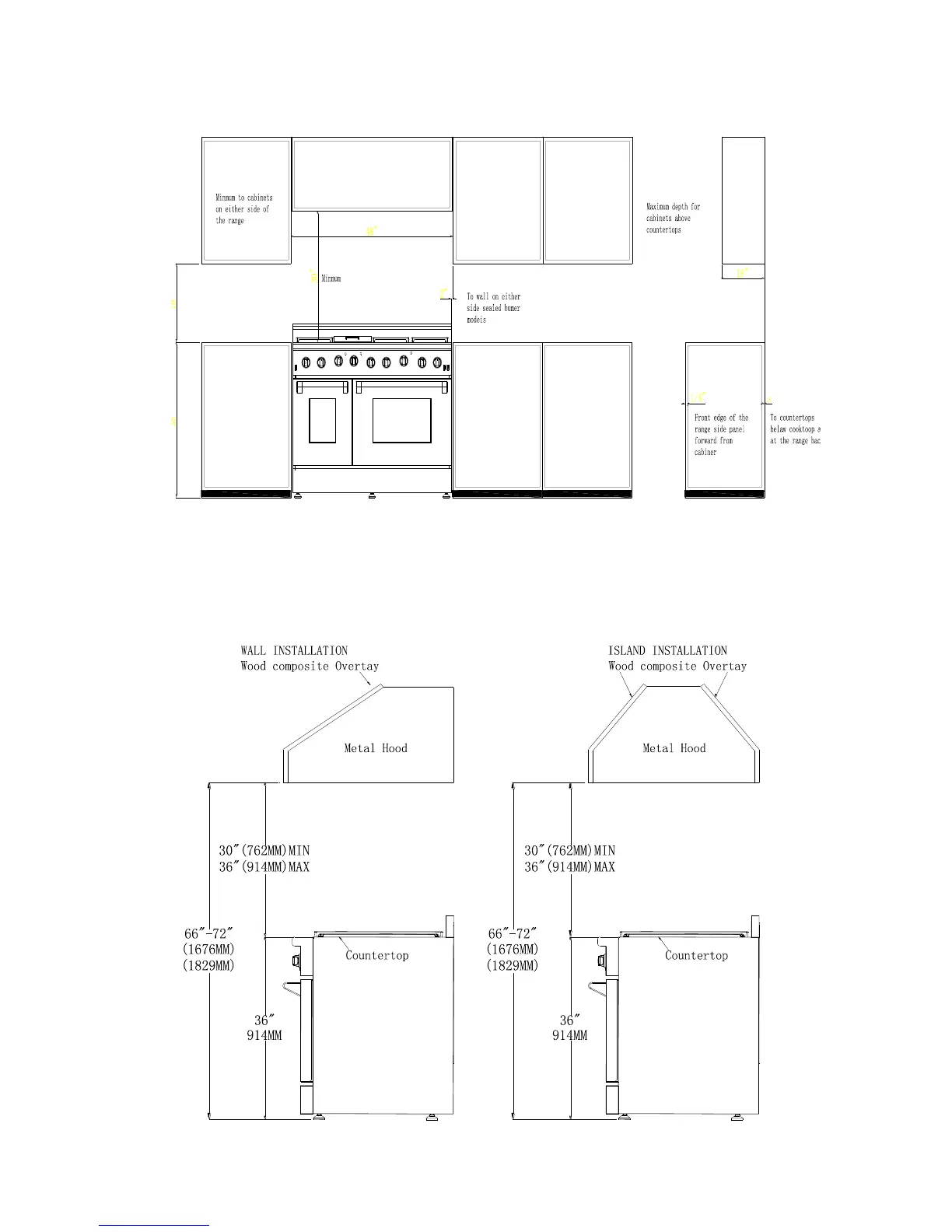 The bottom of the hood should be 30” min. to 36” above the counter top. This
