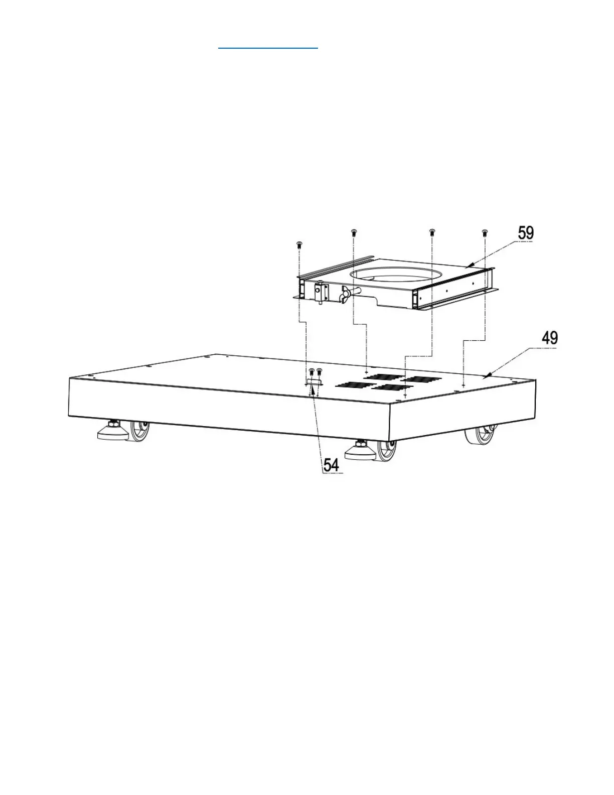 2. Use 4 pcs 5/32” *8 flat head screw (Part # 72) to connect Tank bottom support (Part # 59) to
