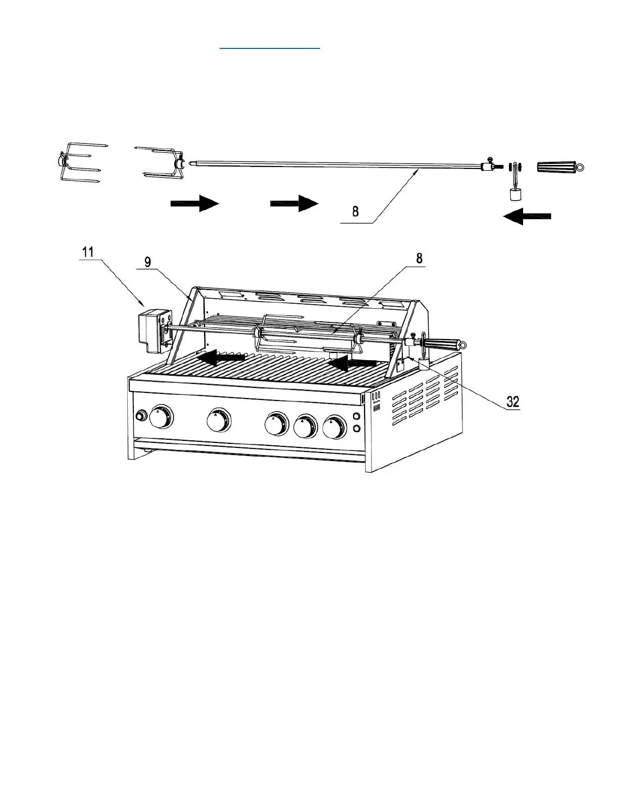 to motor (Part #11), and the other side on top of Rotisserie holder (Part # 32)