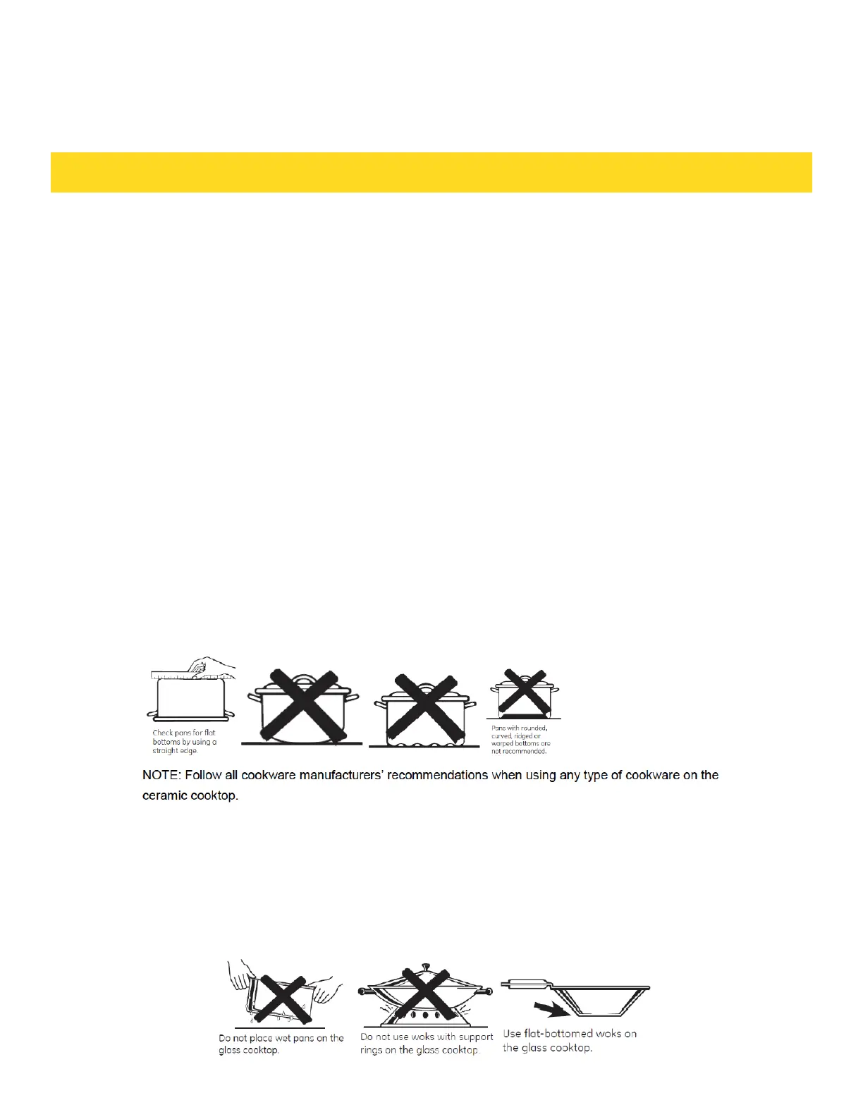 or deep-fat fryers. All cookware must have flat bottoms and be the correct size.
