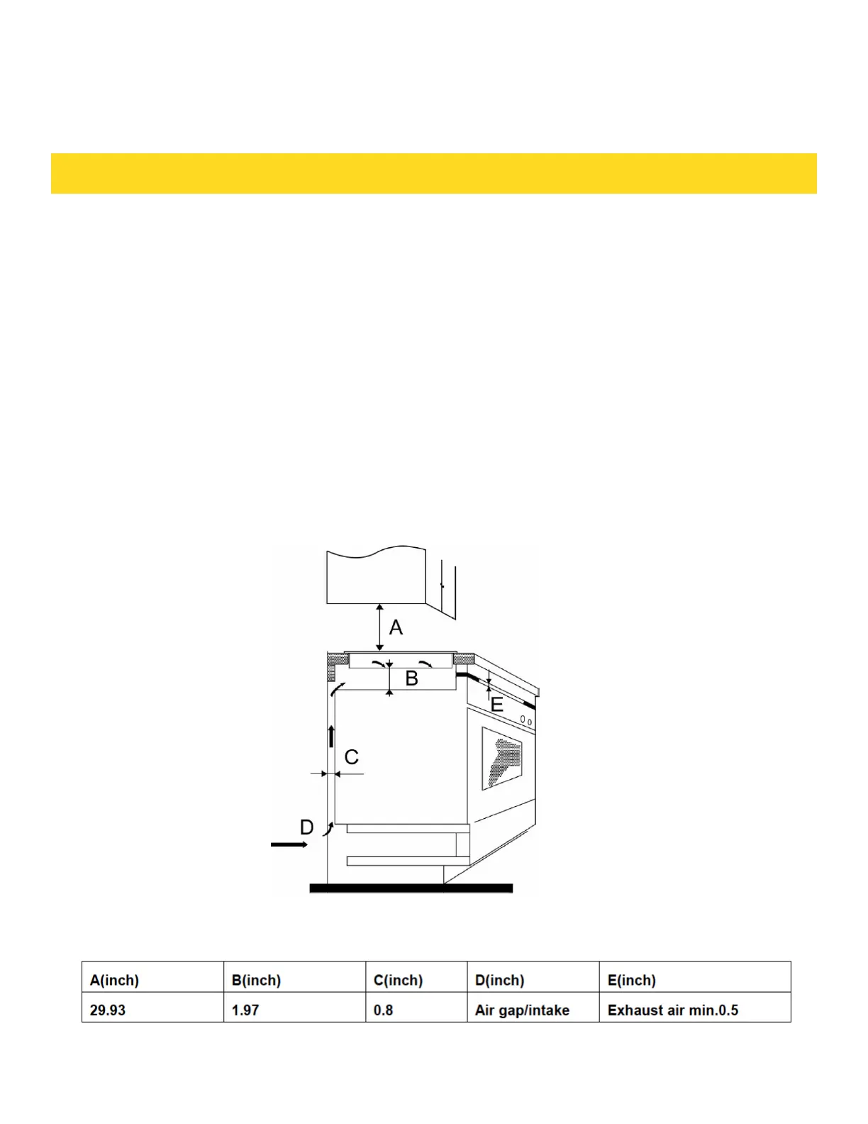 • The safety distance between the bottom of cooktop and the oven must be at least 1.97inch