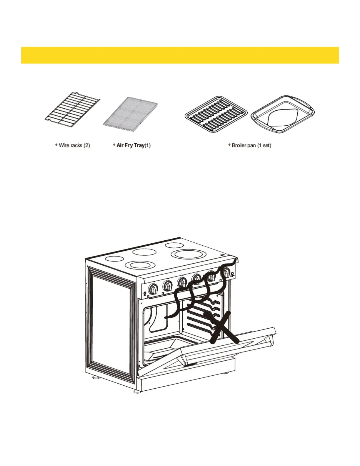 Clean the oven thoroughly before using it for the first time. Then, remove the accessories, set