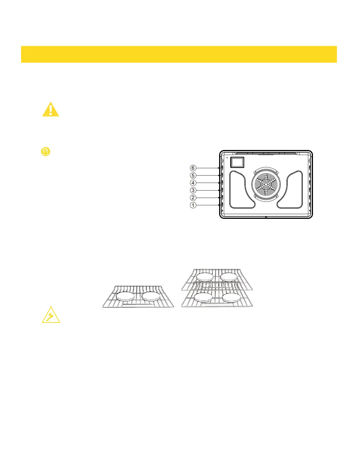 • When placing an oven rack in the top most rack position, make sure that the rack is stably situated on