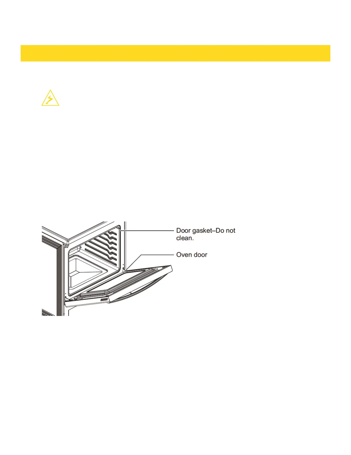 • DO NOT clean the oven door gasket. The oven door gasket is made of a woven material which