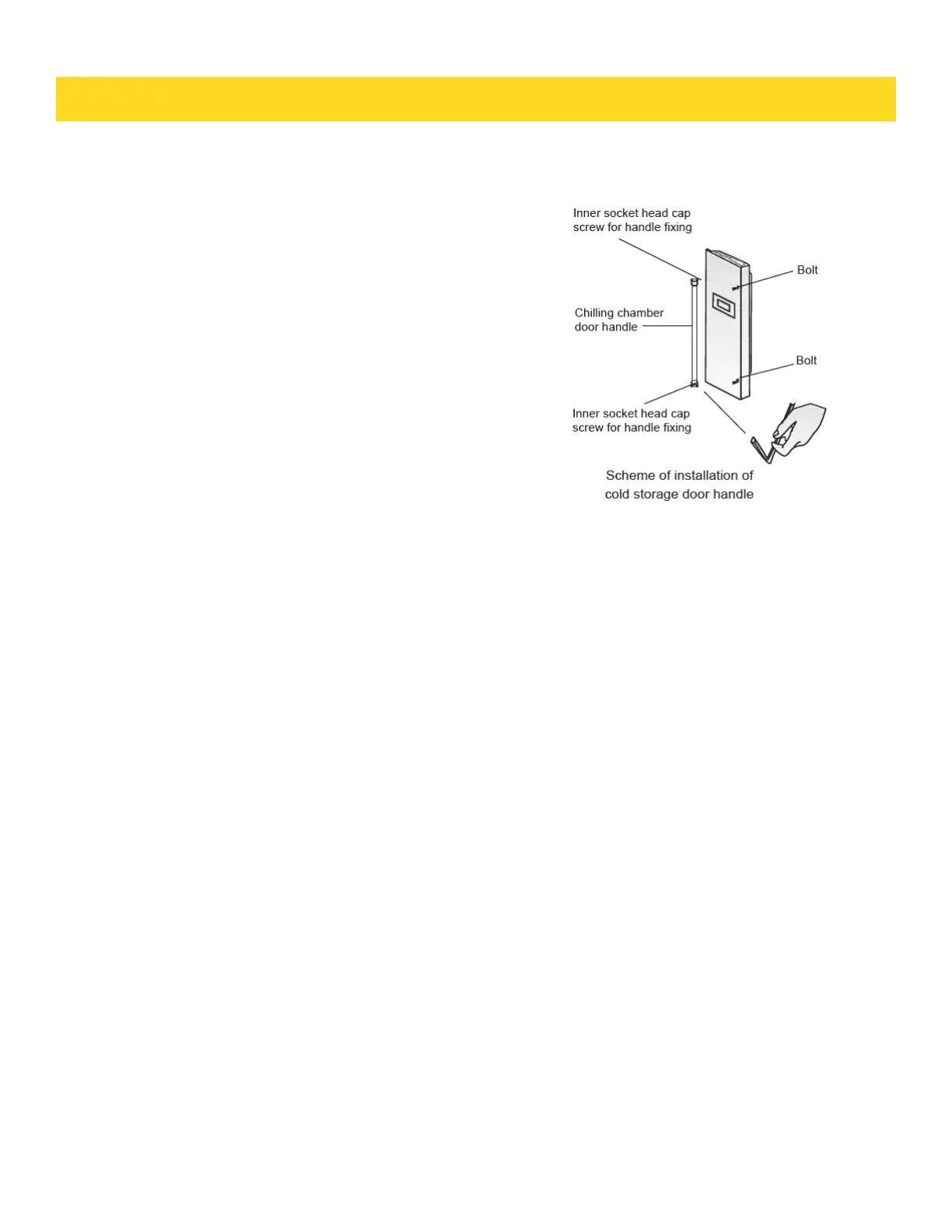The assembly steps of the refrigeration door handle are same as the cold storage door