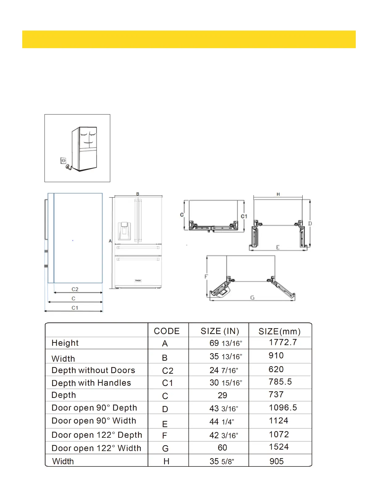 • Before putting any fresh or frozen foods, the refrigerator