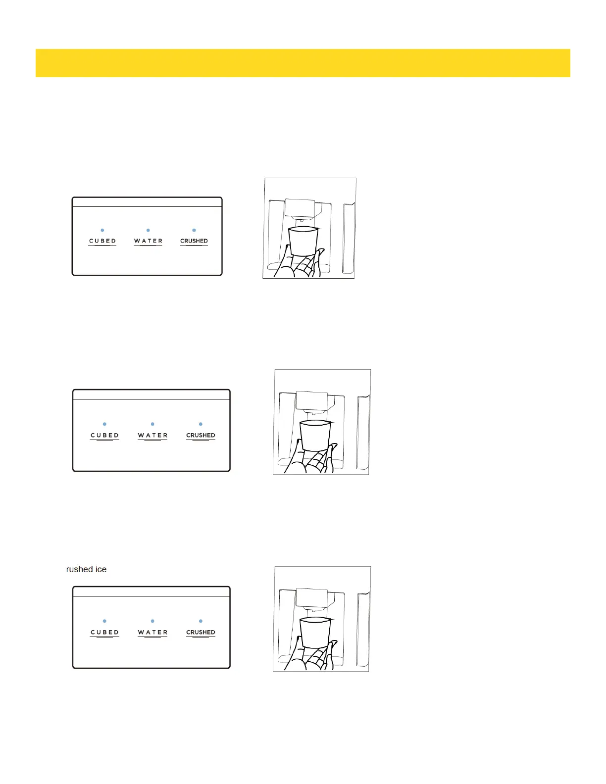 offers a choice of cubed or crushed ice, or cold water. The dispenser only works when