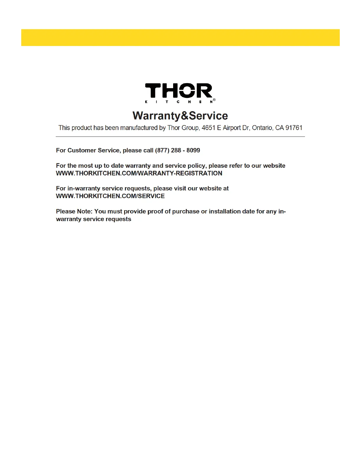 Thor Kitchen TRF3601FD - Warranty and Service; Warranty and Customer Service Information