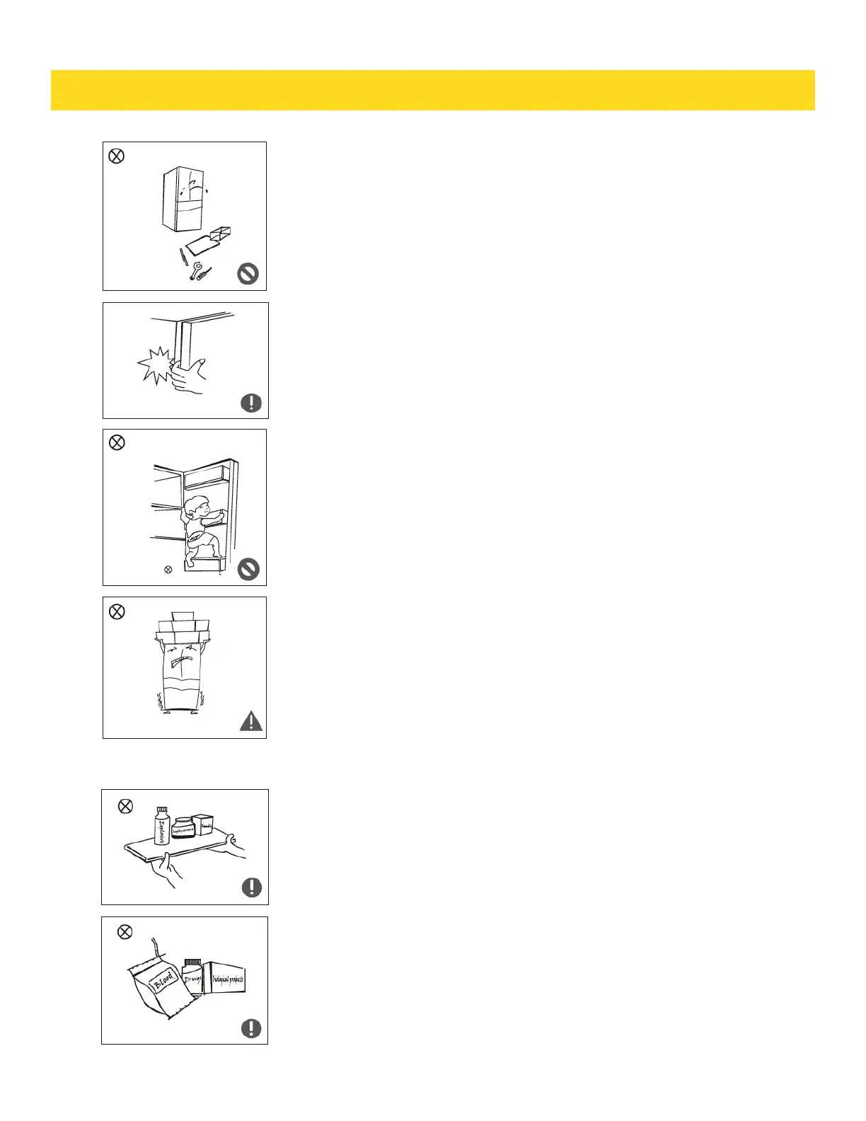 • Do not allow any child to get into or climb the refrigerator; otherwise