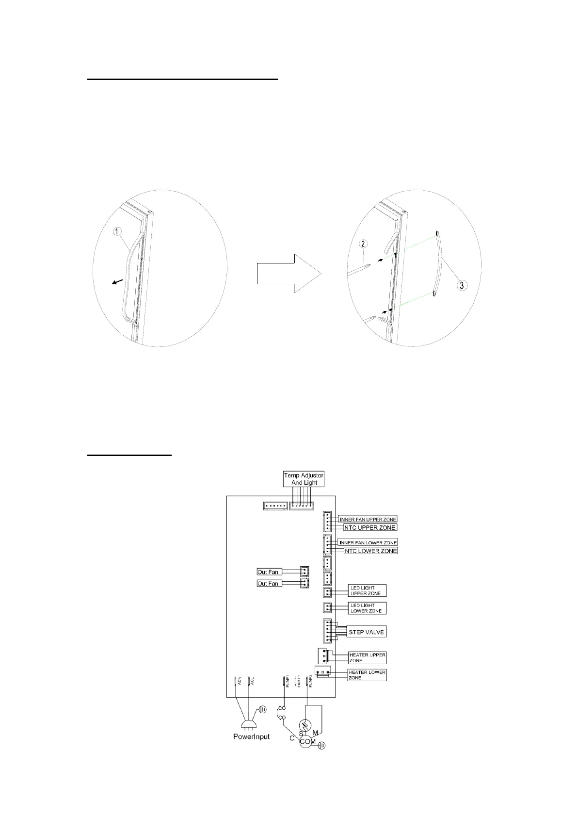 Pull away the door gasket in the area where the handle is to be installed as shown below in