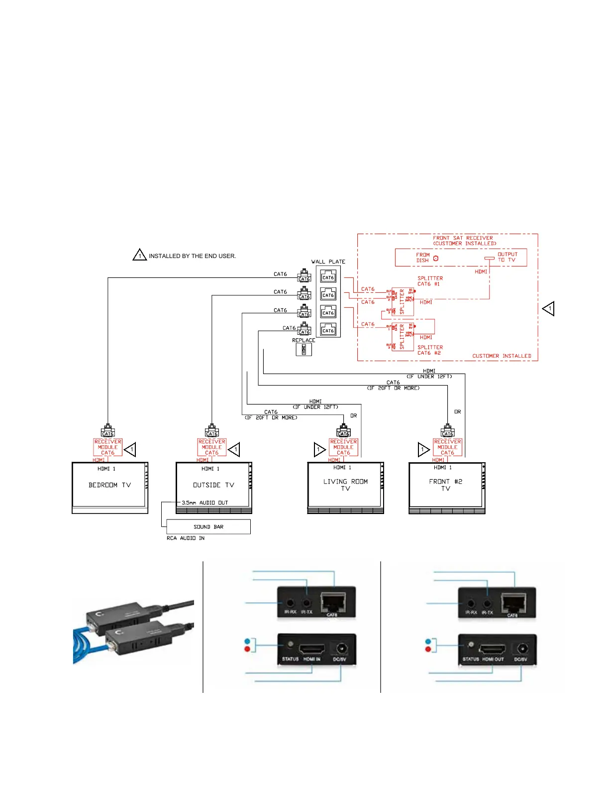HDMI receiver at the TV input. Short CAT6 and HDMI