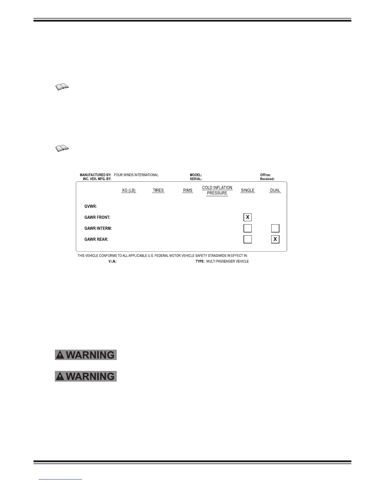 MOTOR HOME SERIAL NUMBER DECAL AND DATA