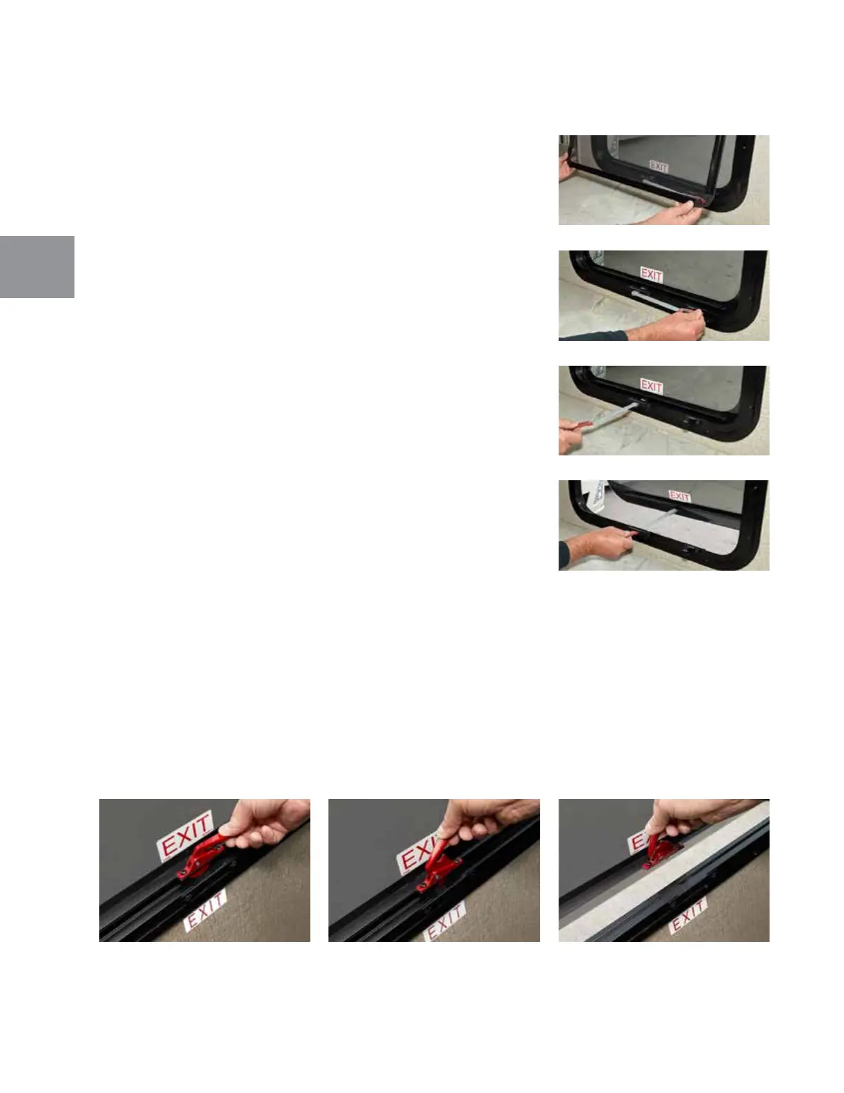 latch. Egress window latches vary in style, but all will be clearly marked with