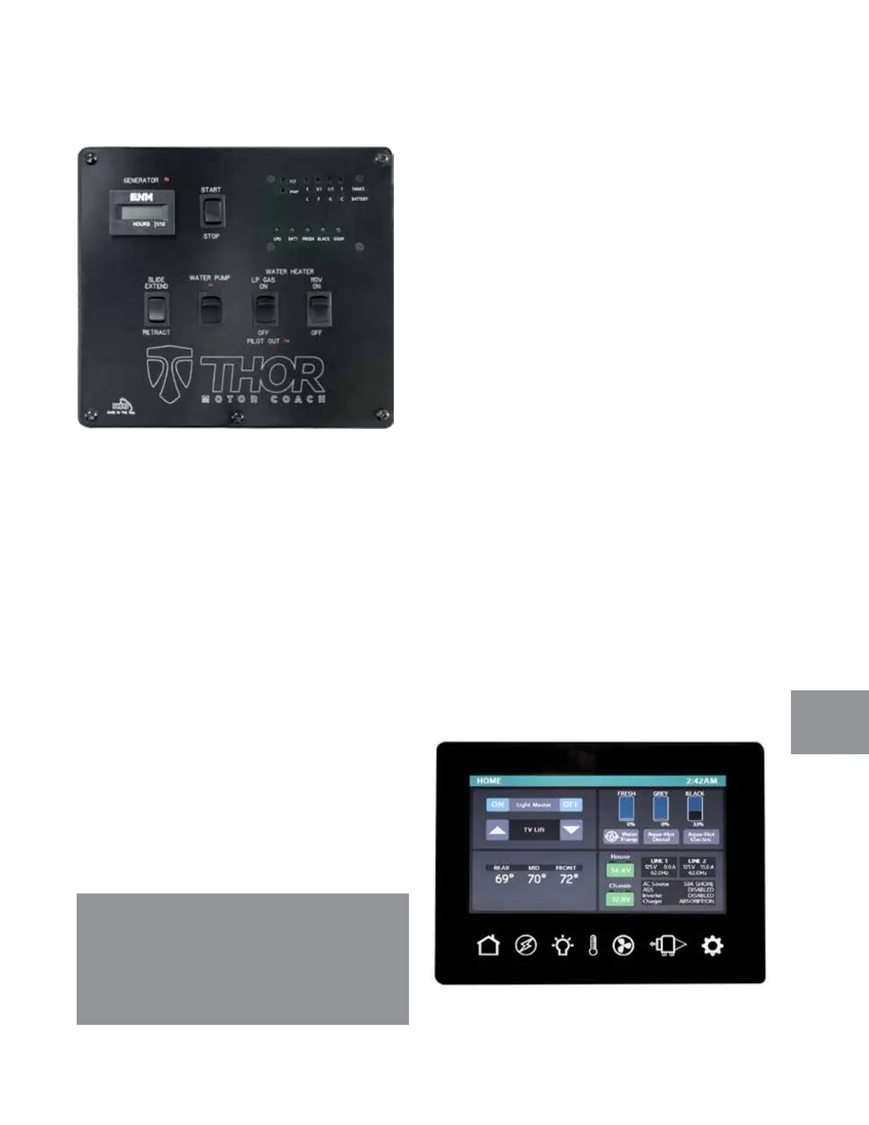 place for electrical controls and monitoring of motorhome