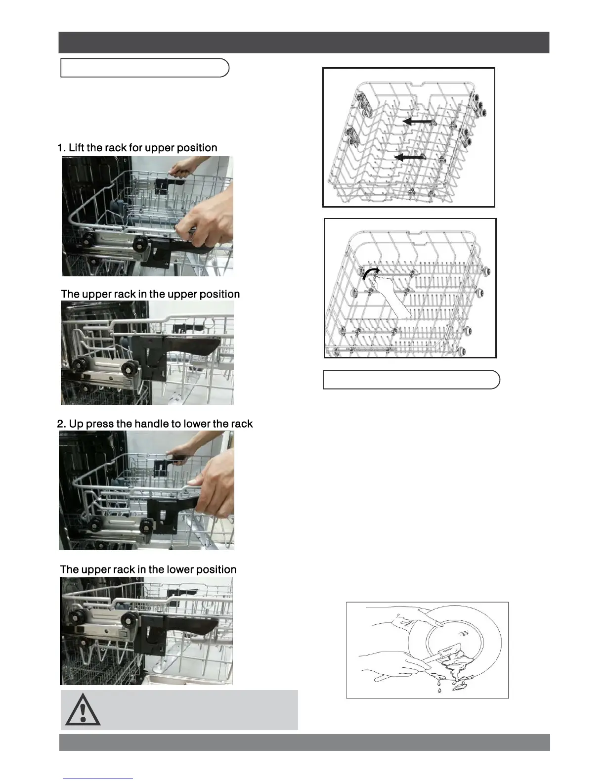 THOR HDW2401SS - Adjustable Upper Rack Guide; Adjusting the Upper Rack Height; Dish Preparation for Loading
