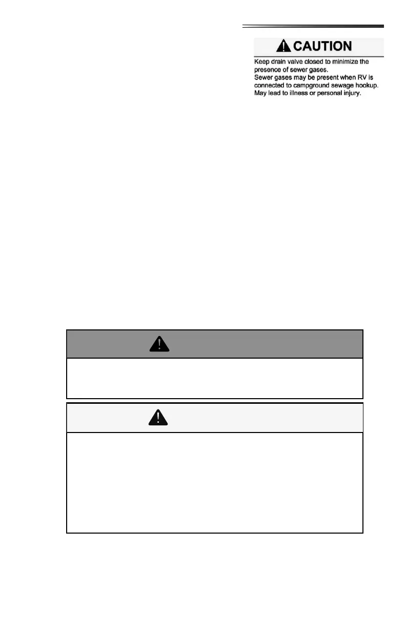 Before using the recreation vehicle, or after dumping the grey and black water holding tanks,