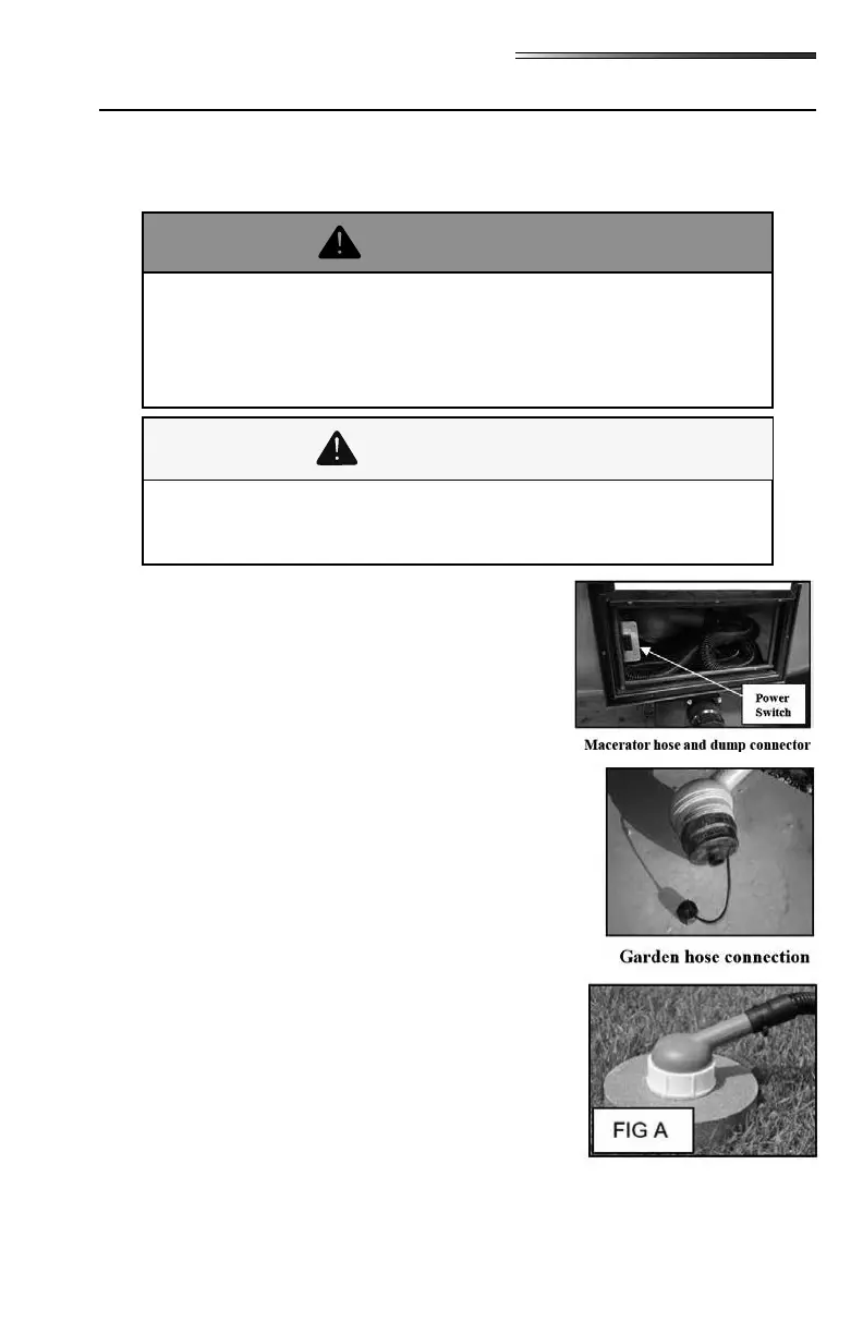 the dump station (Fig A), or to a 3/4-inch garden hose and