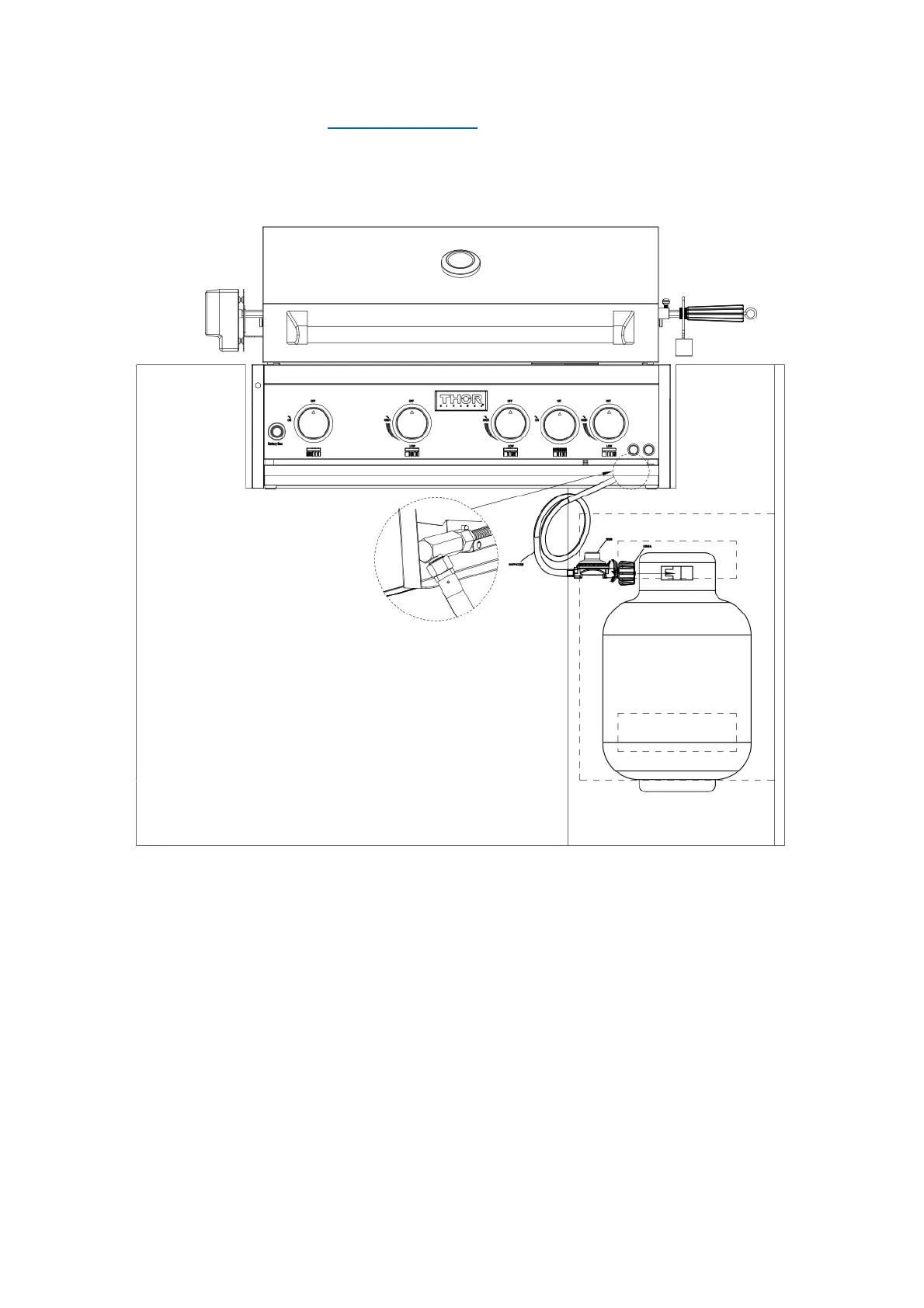 1. This grill is equipped with a propane tank (not supplied). A gas pressure regulator / hose assembly is supplied.