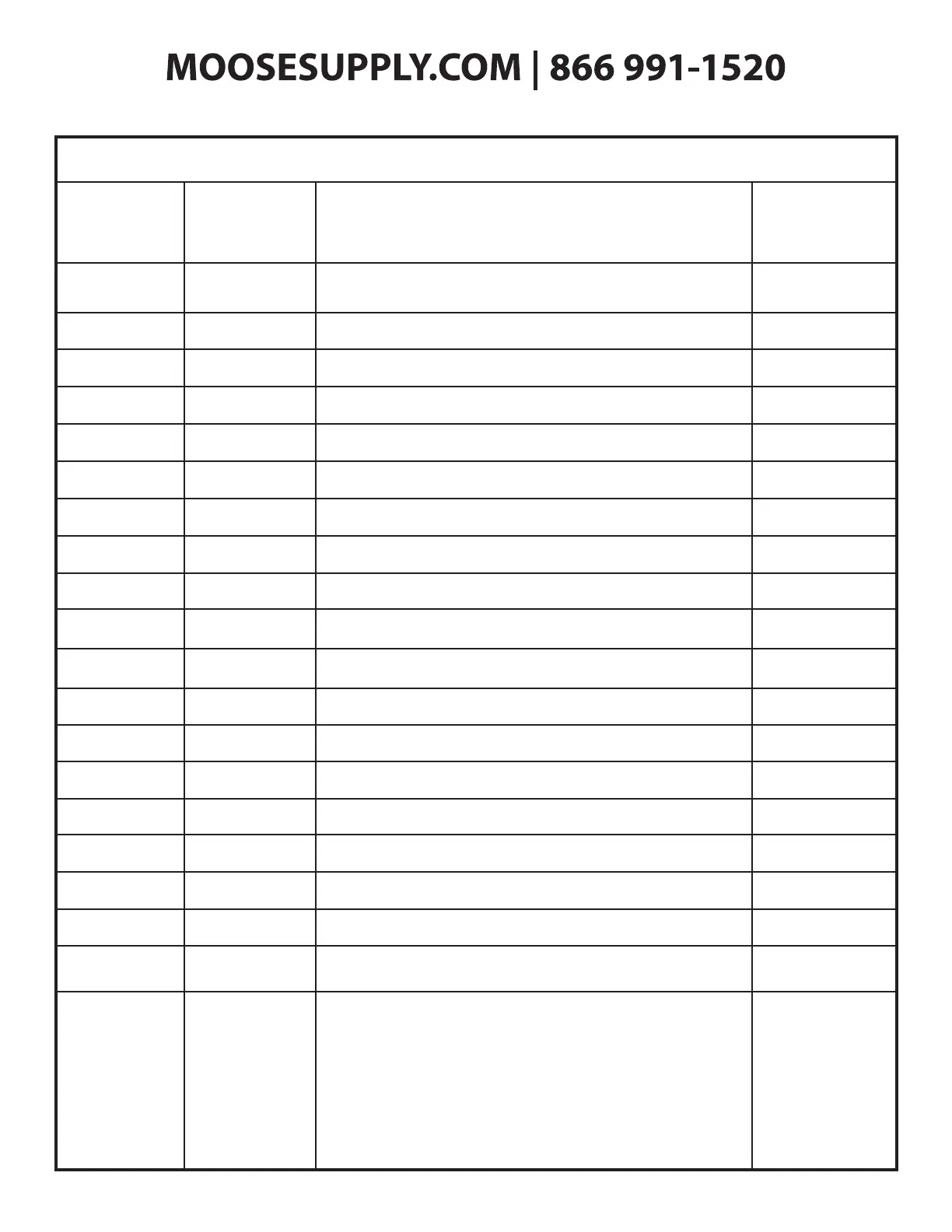 Part SKU Description Quantity