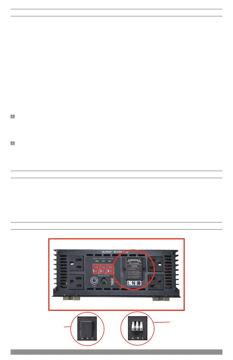 CAUTION Do not connect this inverter and another AC source (generator or utility power) to the AC wiring or AC