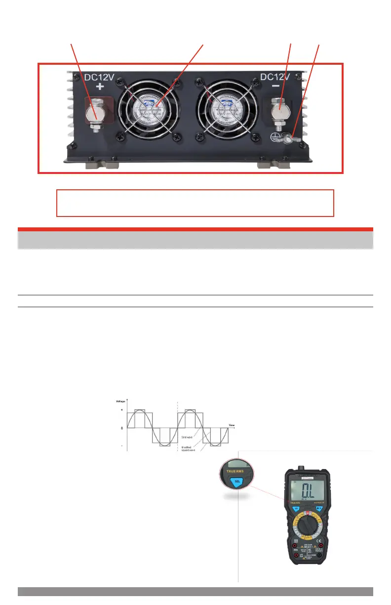 about 20 to 30 volts low when measuring the output of this inverter. For accurate measurement of the output voltage