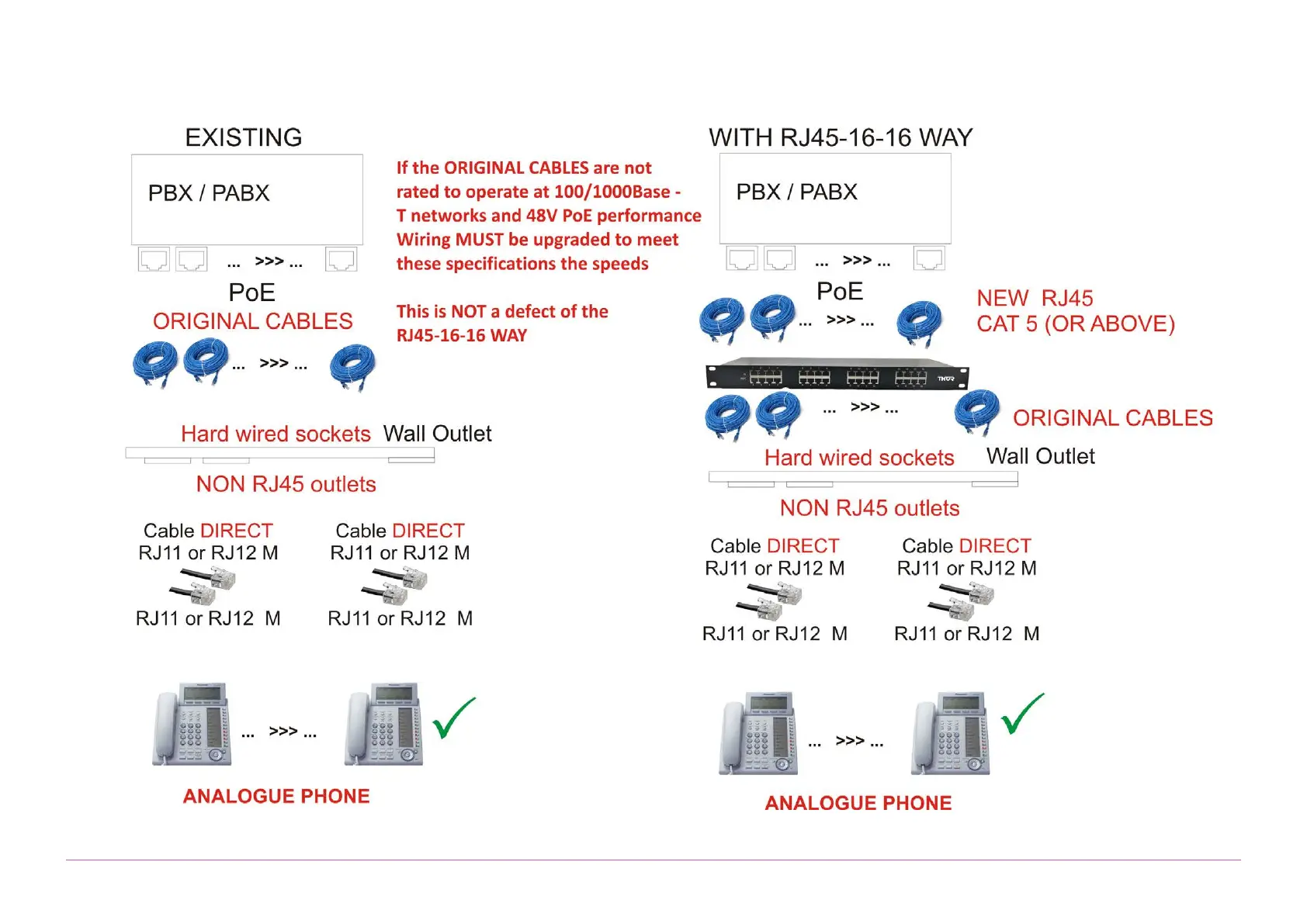 If the PABX /. PBX has standard RJ45 sockets then direct connection is acceptable.