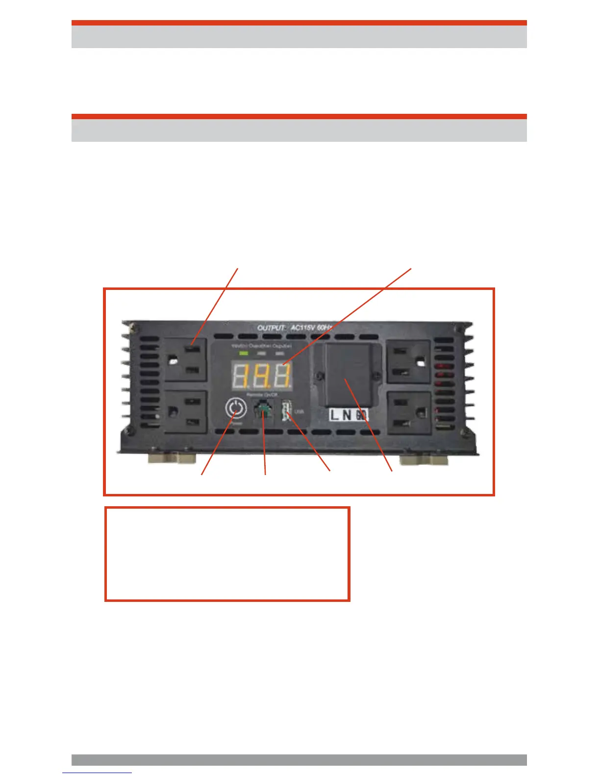 The front Display, indicates power and proper operation of the inverter. This also displays inverter fault codes, if the