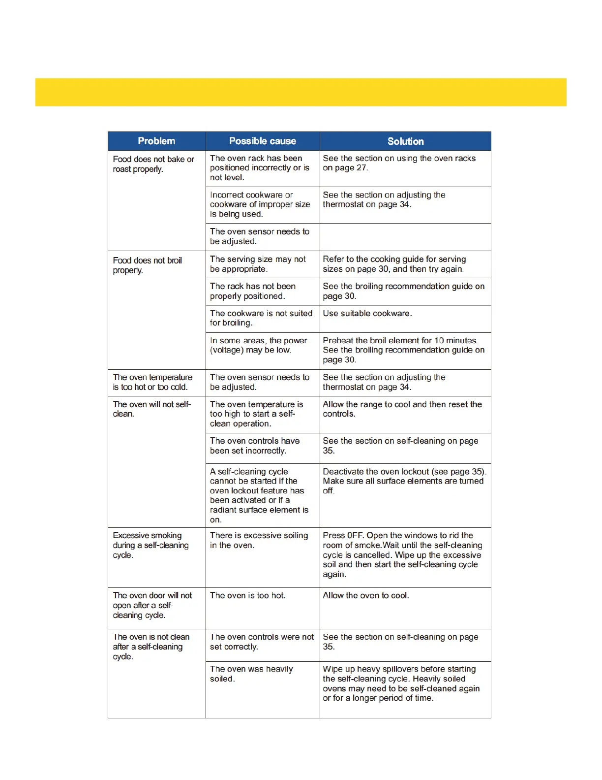 THOR TRG3601 - Oven Temperature and Self-Cleaning Issues; Oven Temperature and Self-Cleaning Troubleshooting; Oven Smoking and Door Lock Troubleshooting