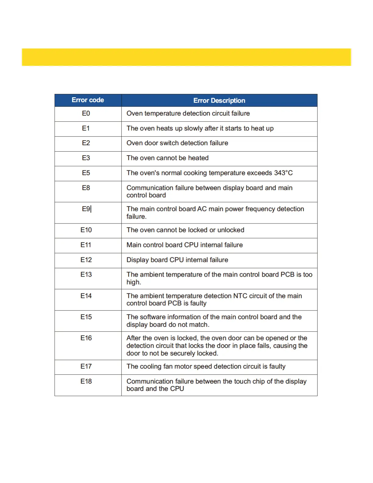 THOR TRG3601 - Information Codes and Error Descriptions
