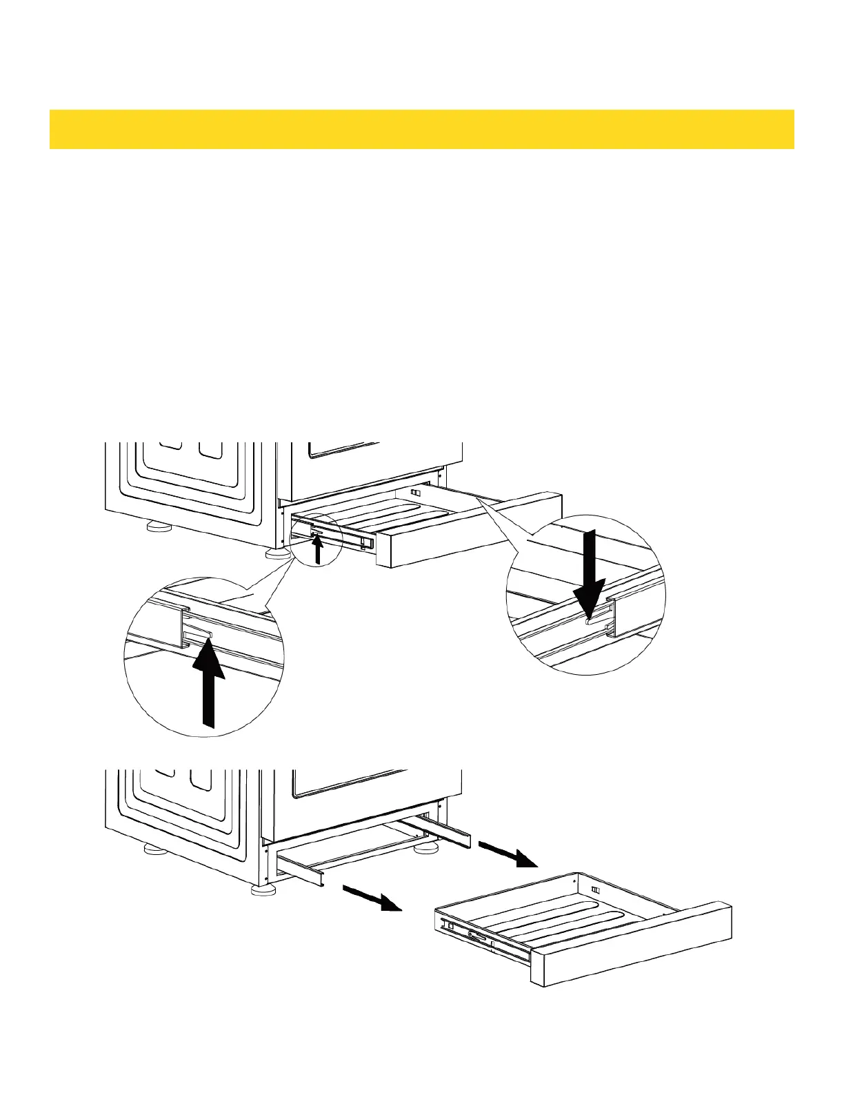 plastics or flammable material in the drawer. Clean the storage drawer with a damp