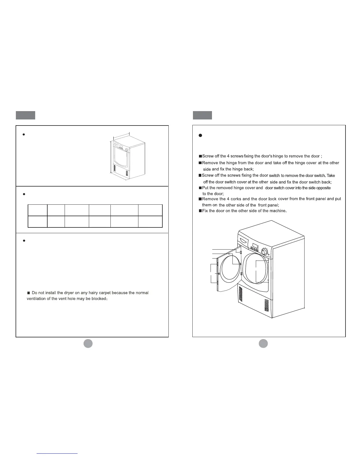 If the direction of the dryer's door is not suitable to the location, its opening direction