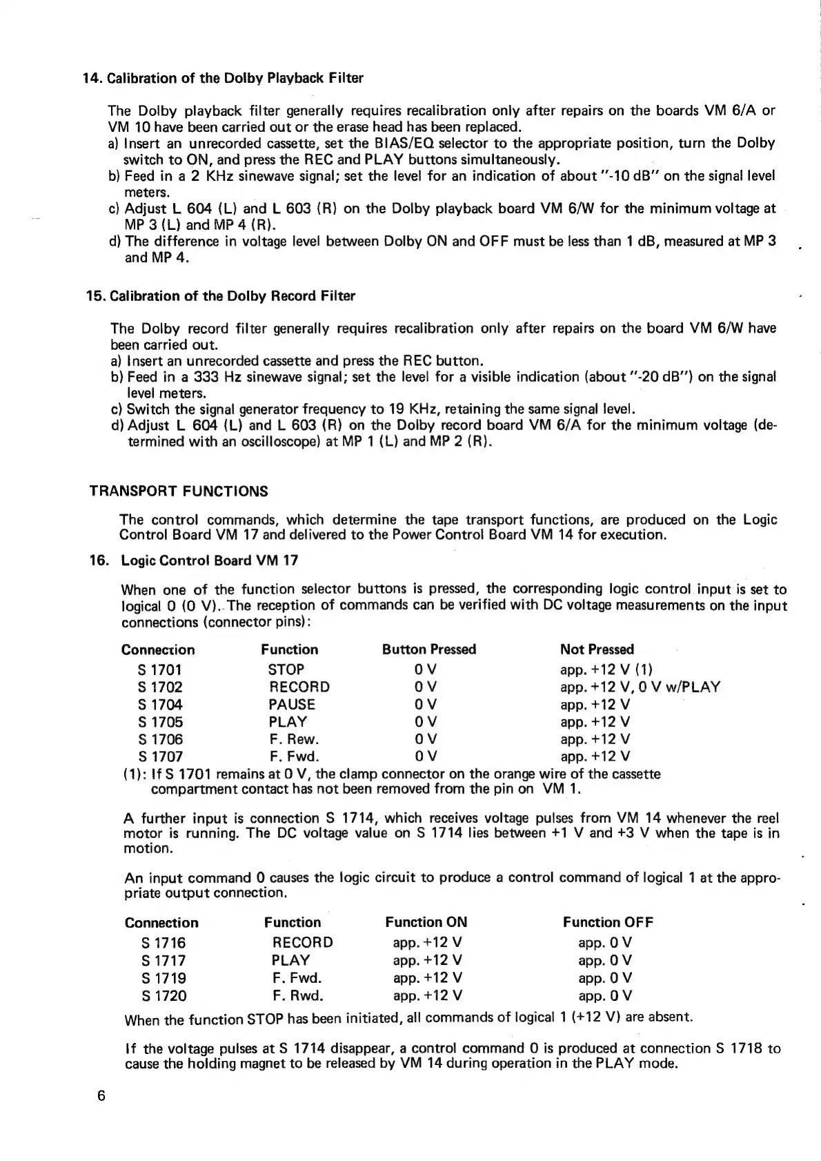 THORENS PC 650 - Control Systems; Logic Control Board VM 17