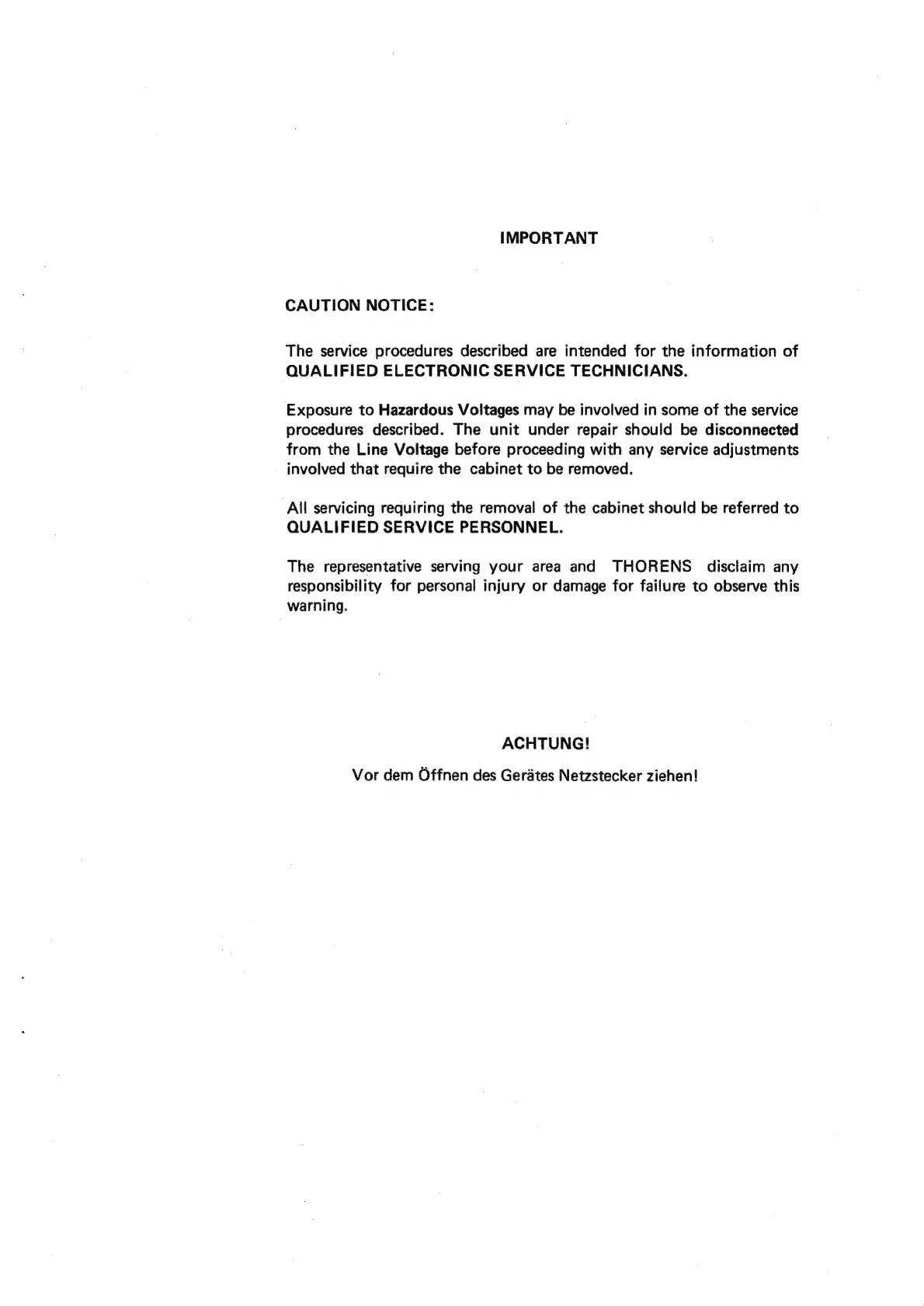 THORENS PC 650 - Cautionary Notices
