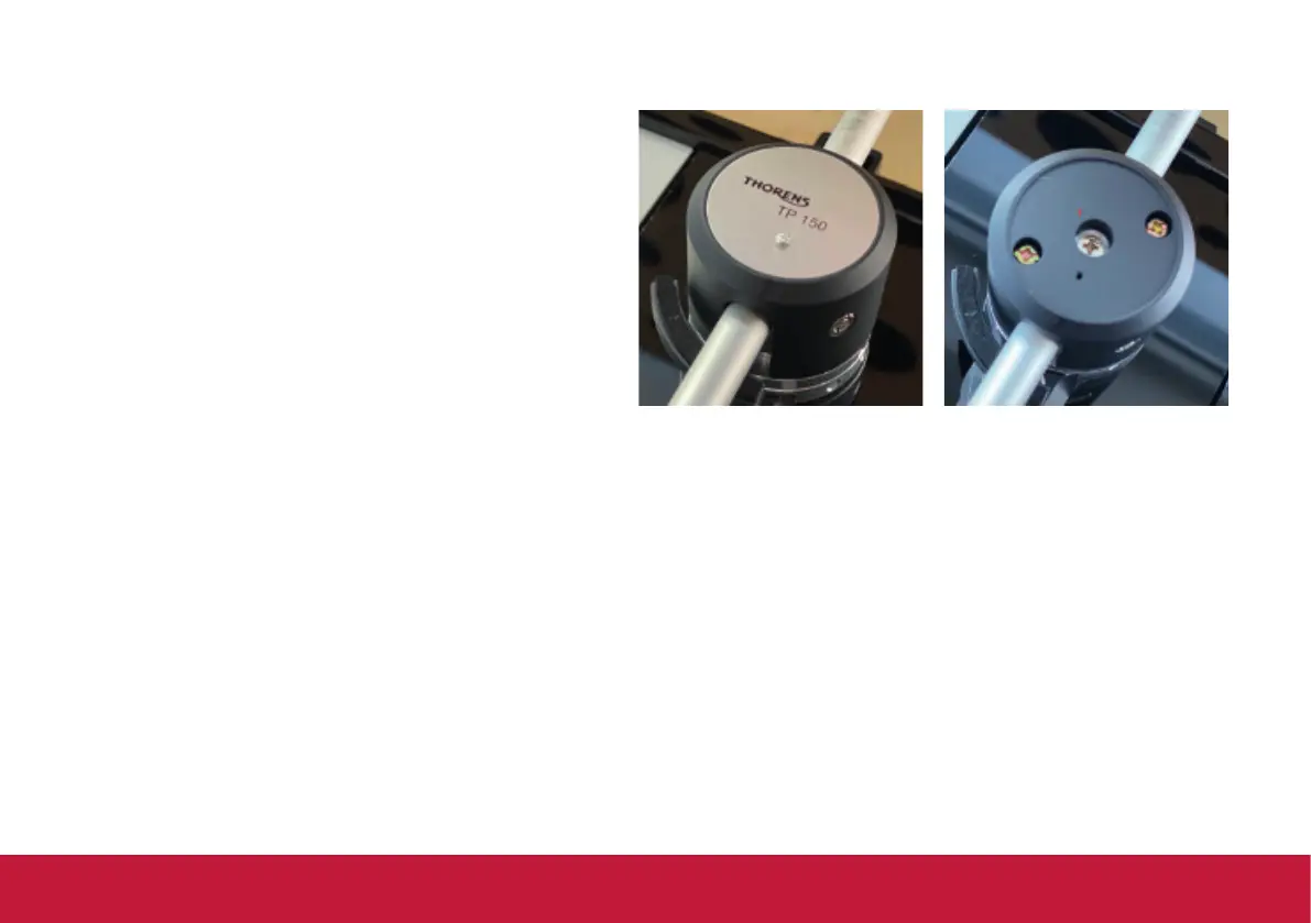 注意:请仅稍微松开螺丝,切勿松脱! 松开螺丝后,唱臂管可以双向转动几度。 这样做时,请始终使用镜