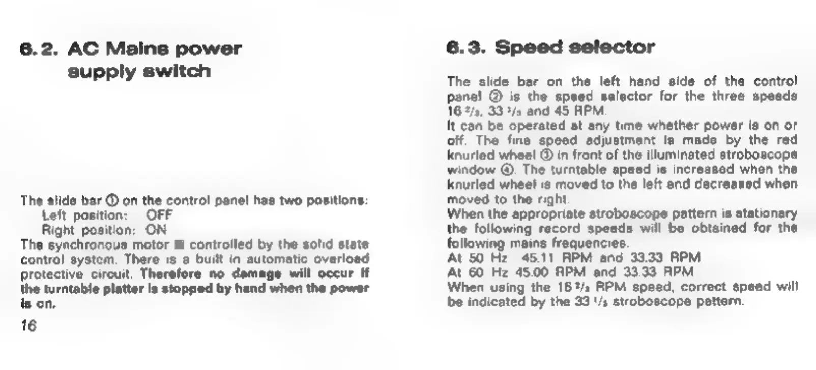 THORENS TD125 - AC Mains Power; Speed Selector