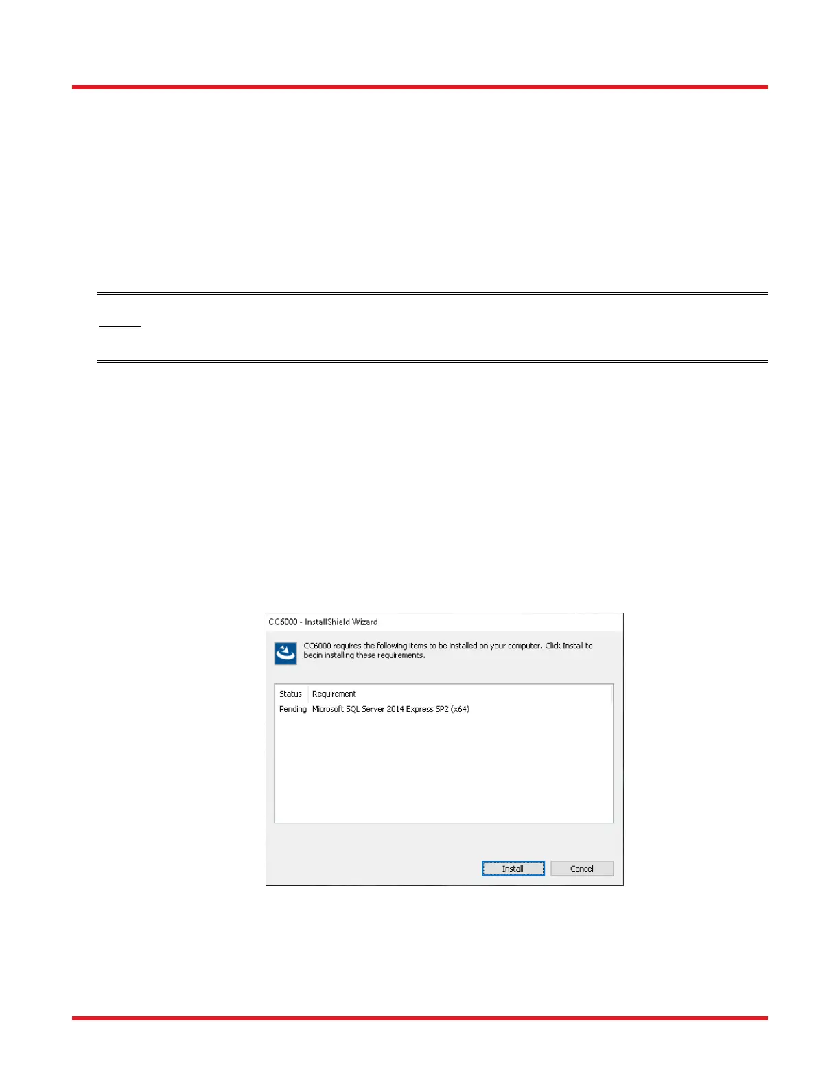 detected on the target computer. For example, the CC6000 program requires SQL Server 2014 for its