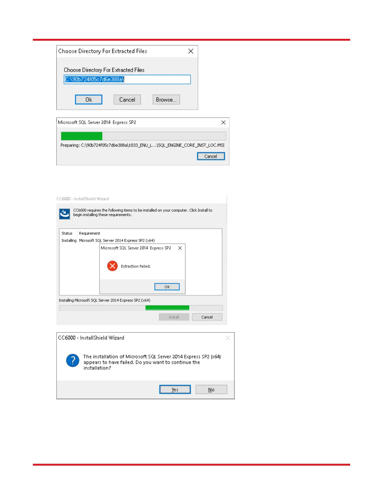 6. If the following “Extraction failed” window appears, click OK, then click NO (when asked if you want to