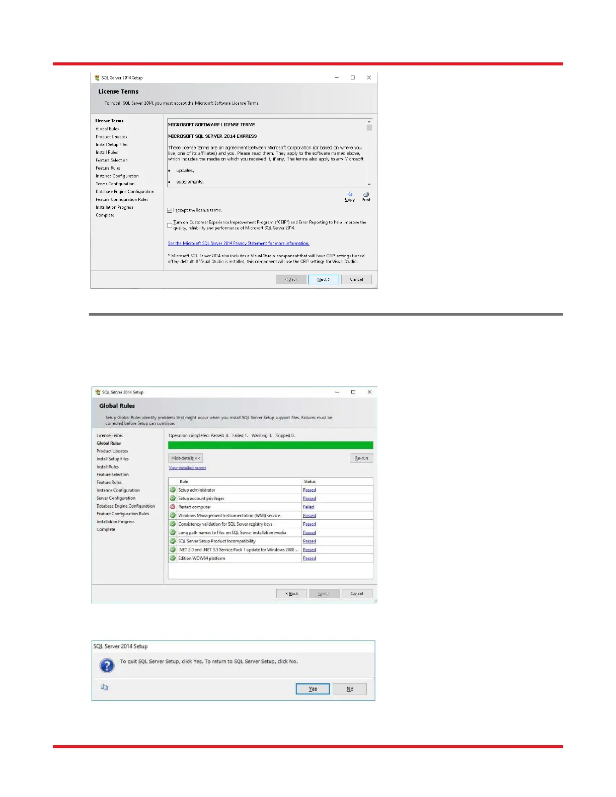 NOTE: In the Global Rules phase of this installation, the following “Failed” message may appear, indicating