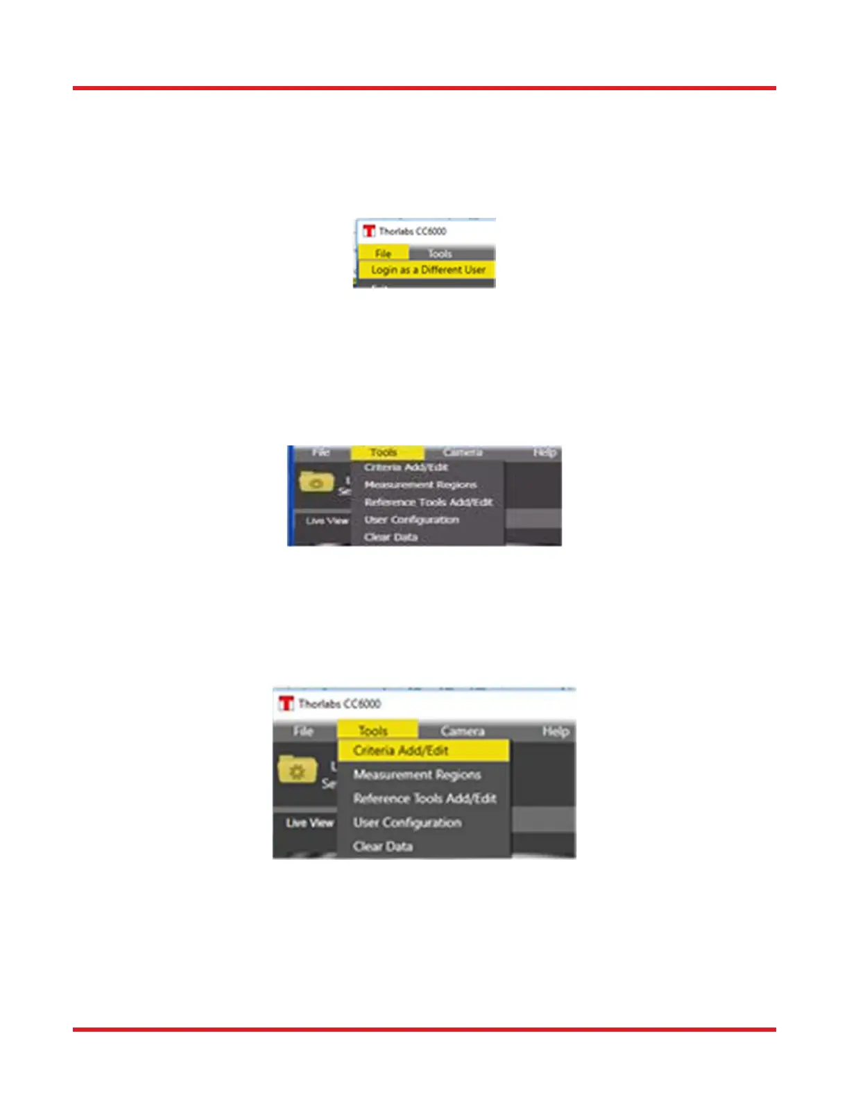 Select “Login as another user” to login as a different user (with different privileges) into CC6000 Software without