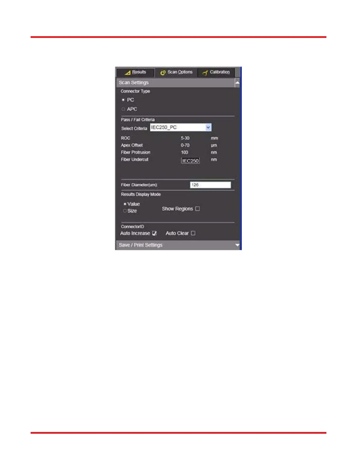 connector must also match this selection for correct scan results to be obtained.