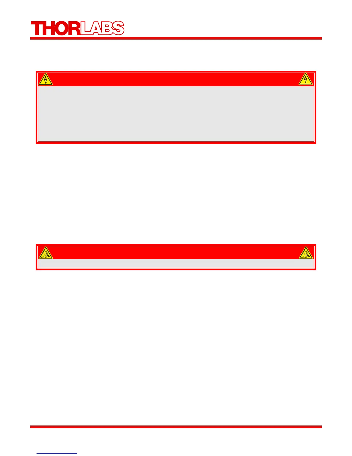 something should go wrong with the unit, do not attempt to fix. Call a Thorlabs representative and