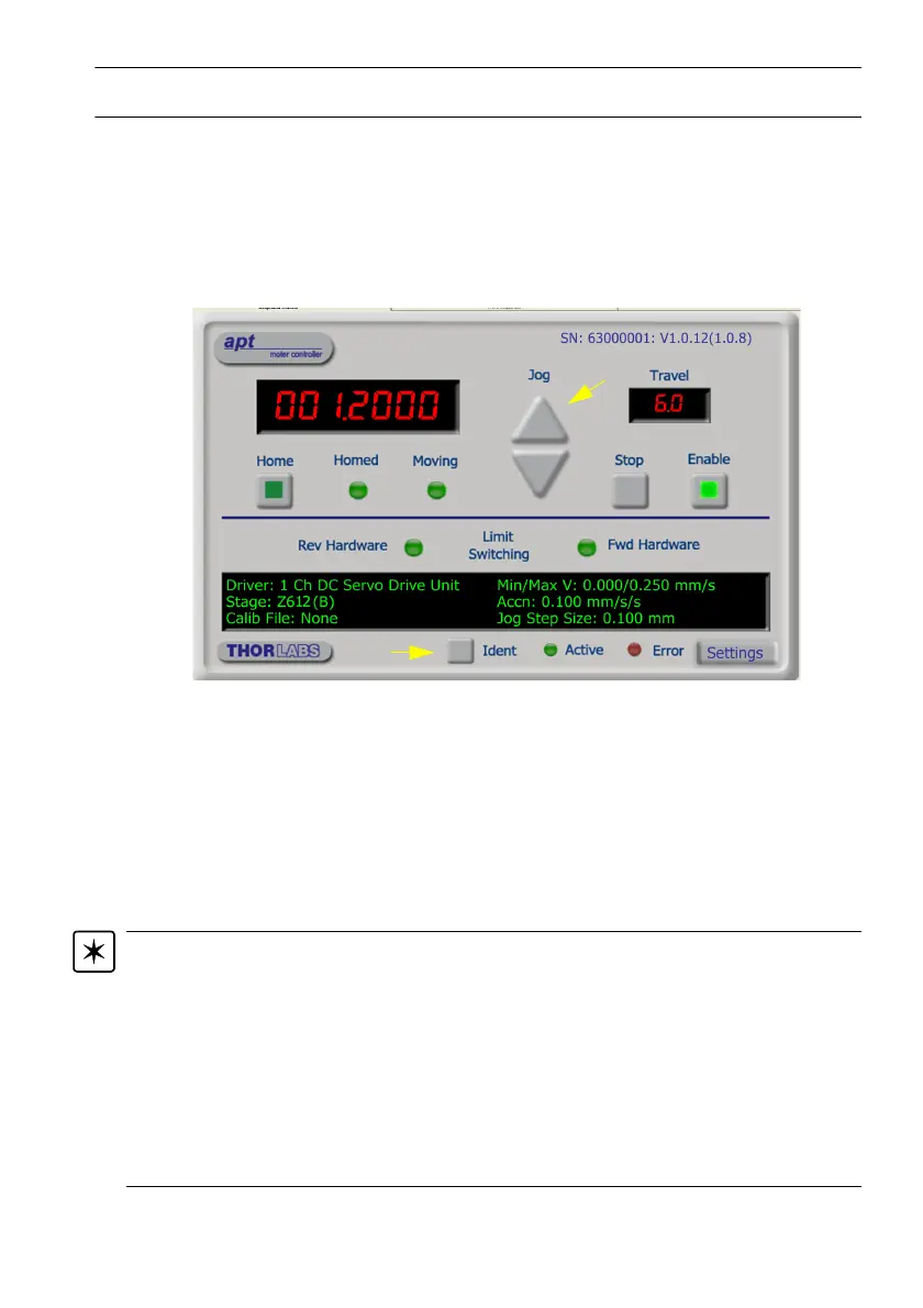 Fig. 2.7 Gui panel showing jog and ident buttons