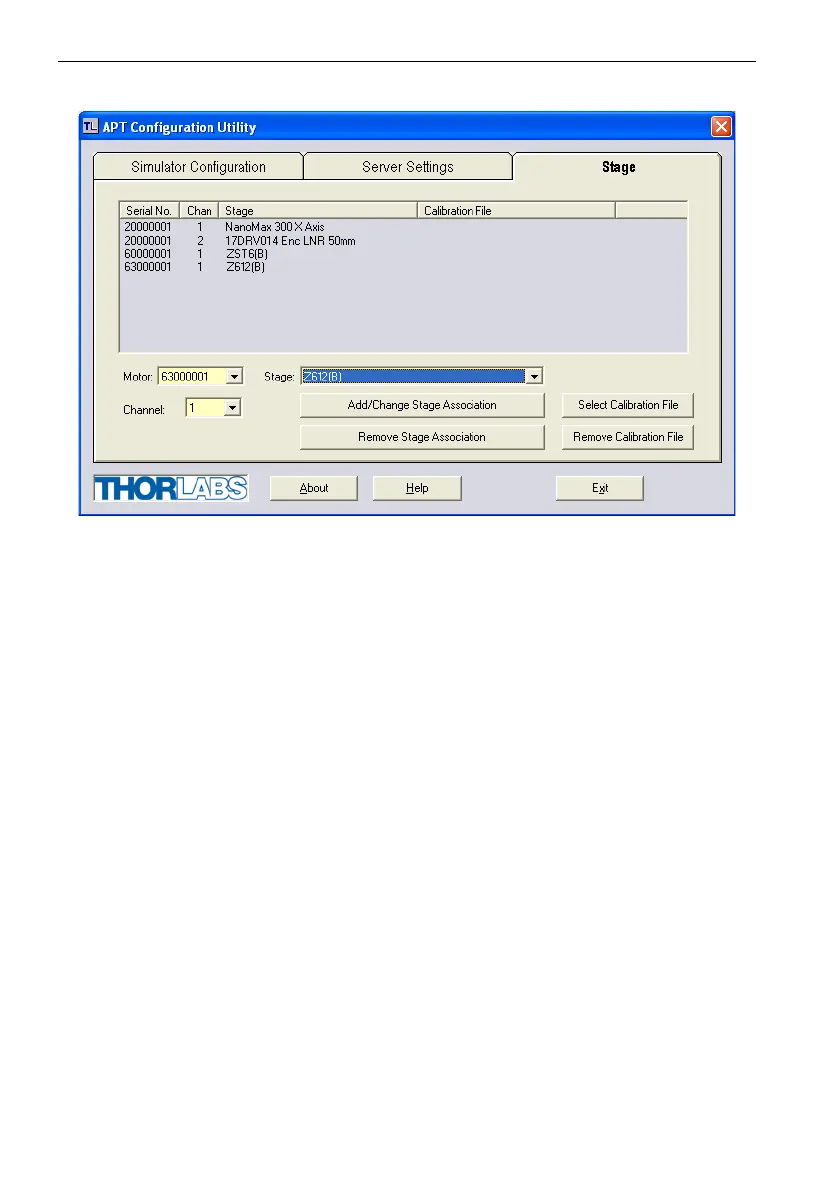 7) Click the 'Add/Change Stage Association' button. The Z612(B) actuator and serial