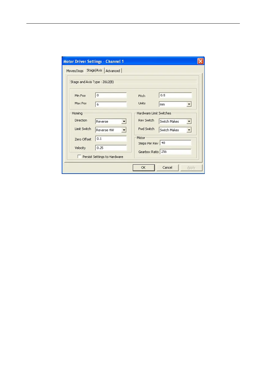 Thorlabs stages and actuators selected using APT Config, as it may adversely affect