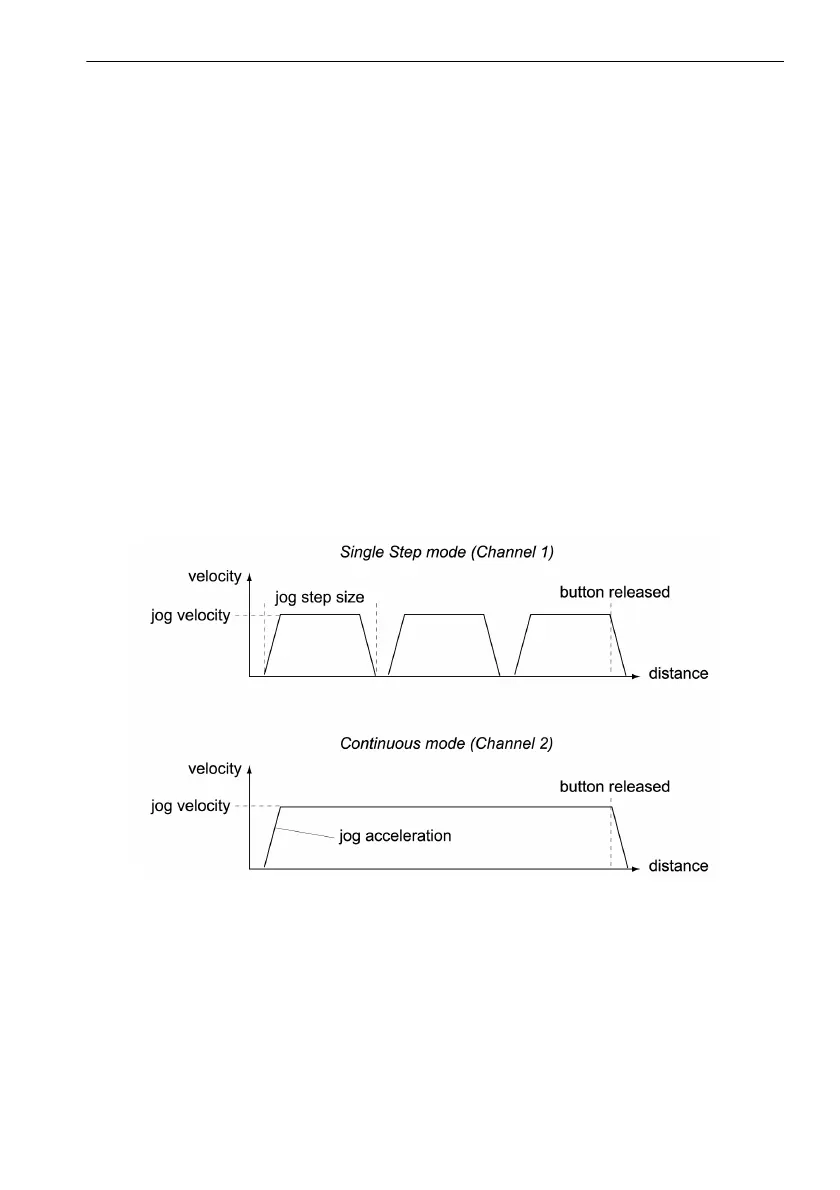 Jogs are initiated by using the ‘Jog’ keys on the GUI panel (see Section 4.7.), or the