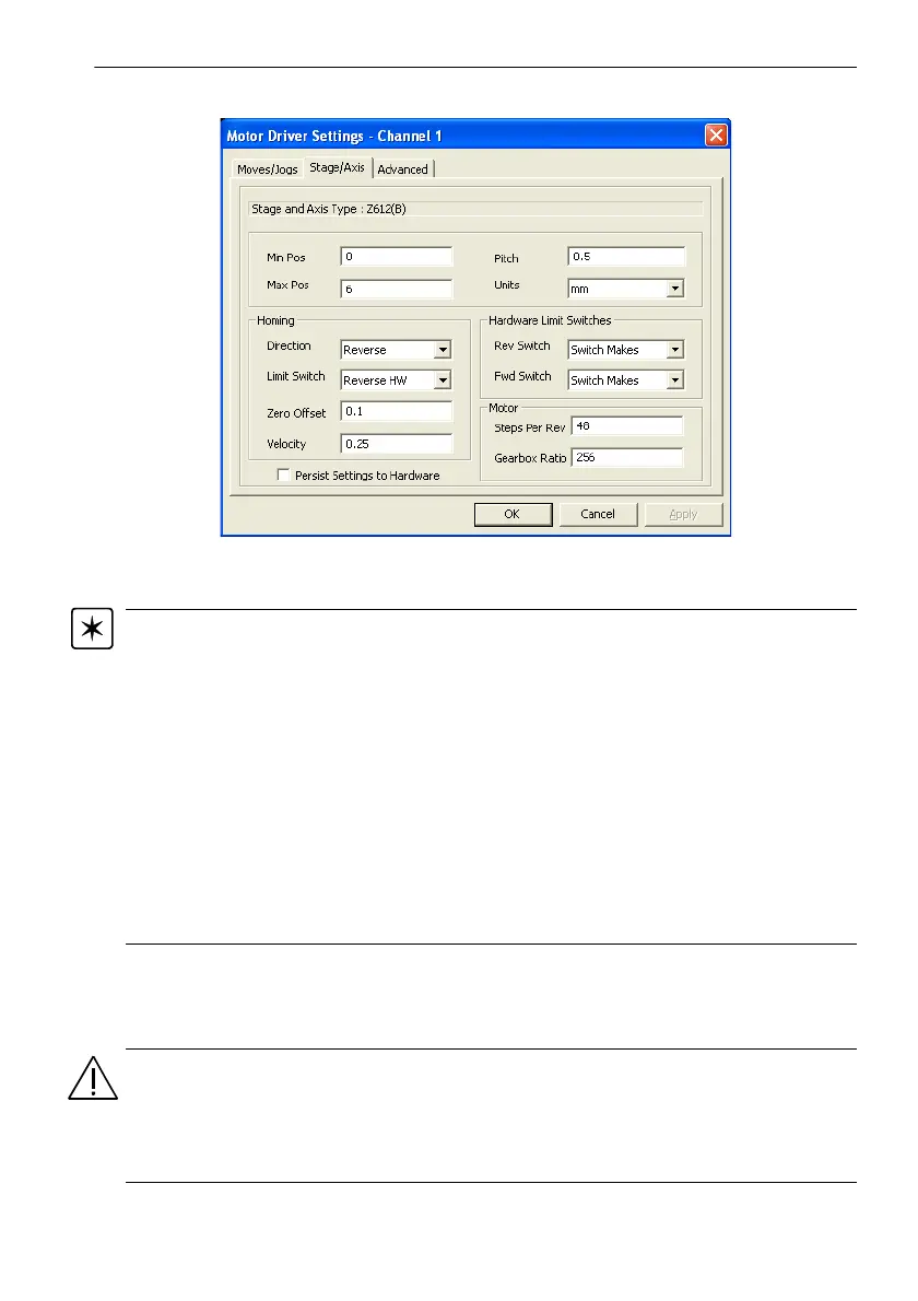 combination being driven. Consult Thorlabs for advice on settings for stage/actuator