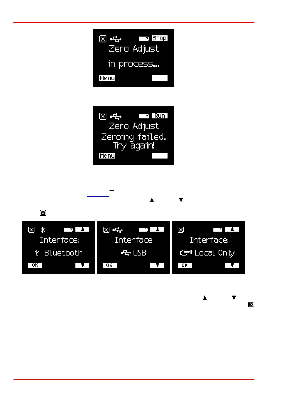 "Interface" menu appears. Use the buttons next to up or down icons to select Bluetooth or
