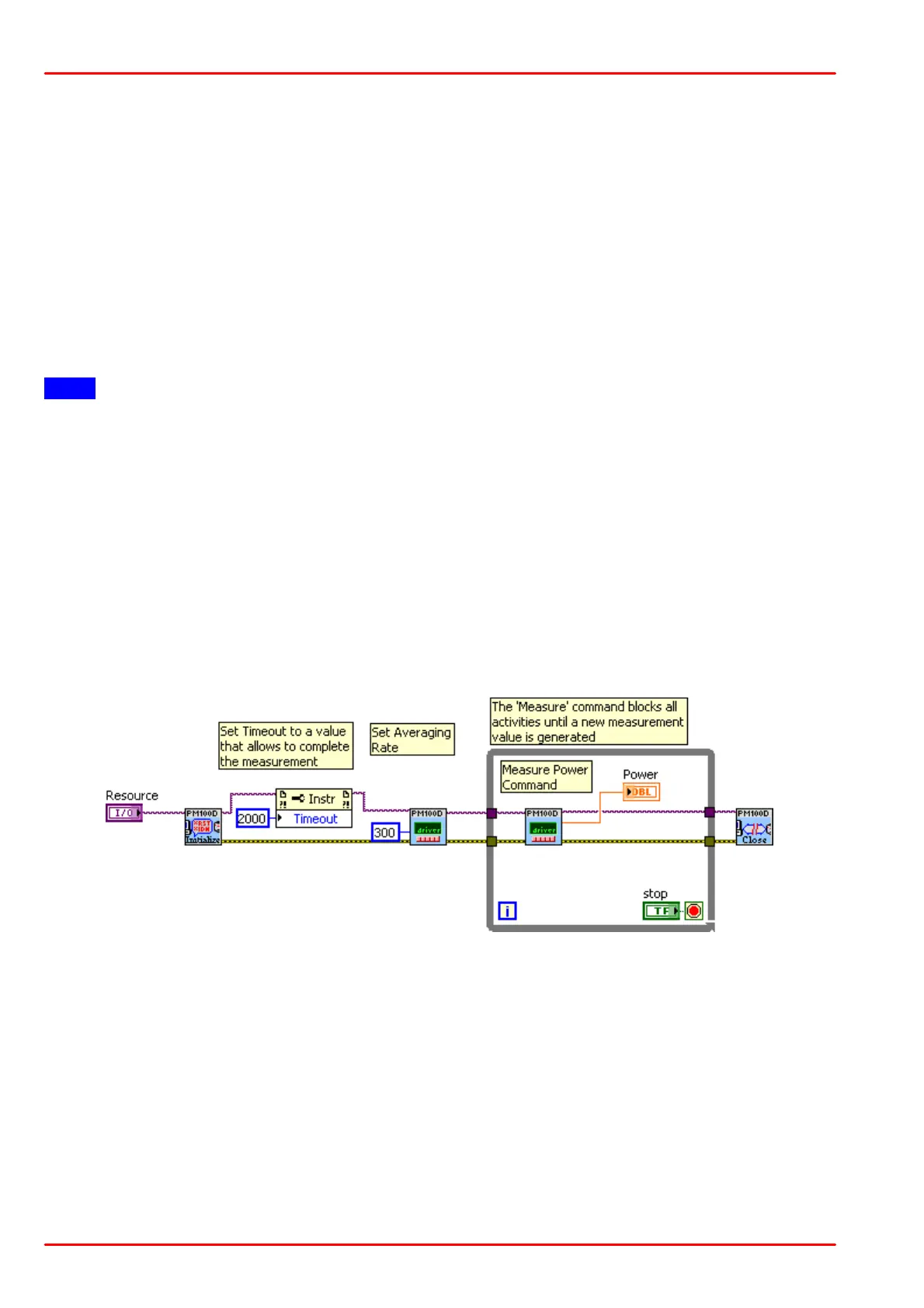 The following LabVIEW example demonstrates how to use the instrument drivers for measure-
